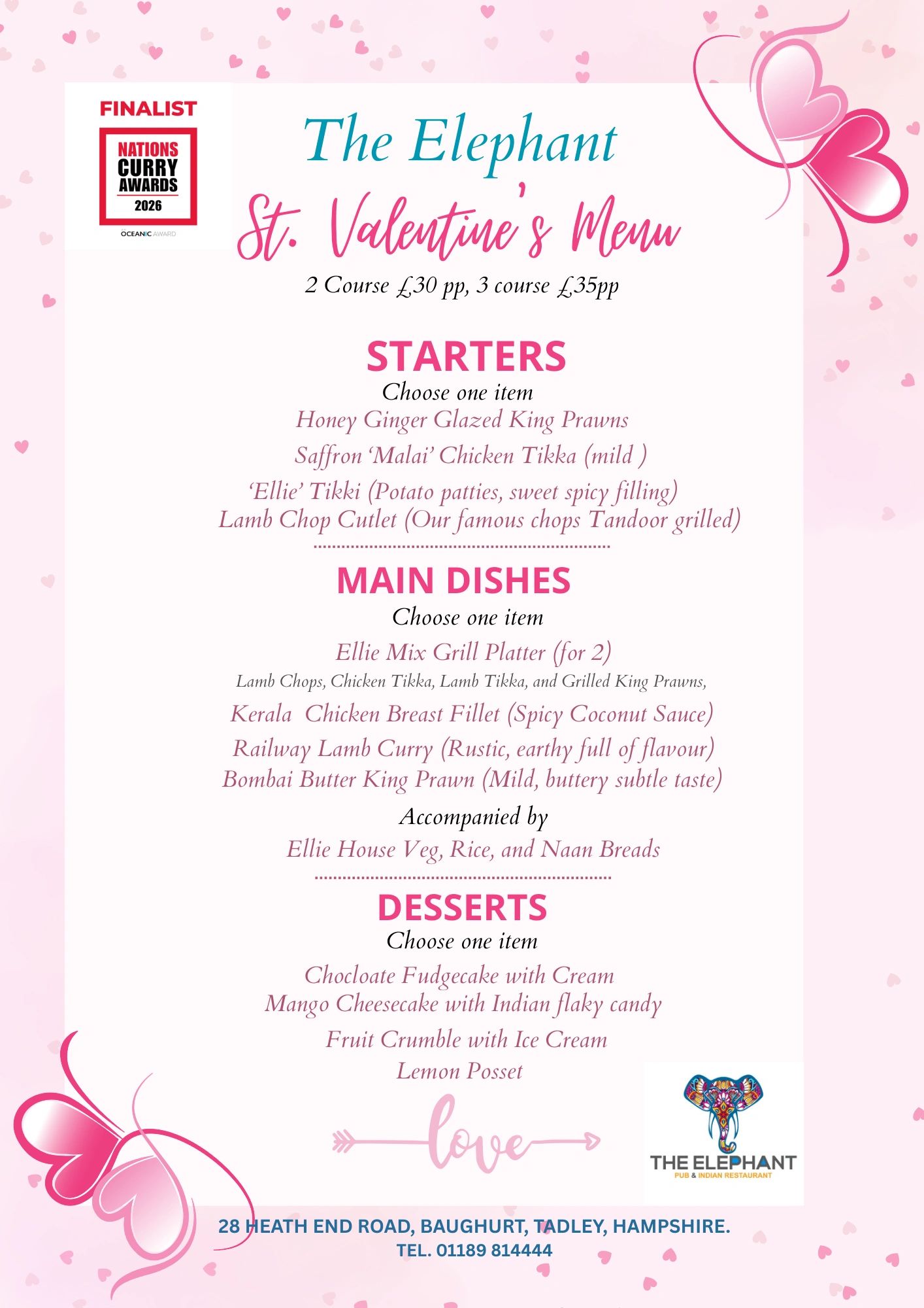 We are thrilled to be finalists in Britain Curry Awards 2026, and we want to celebrate with you! Treat your someone special to an unforgettable evening at The Elephant.